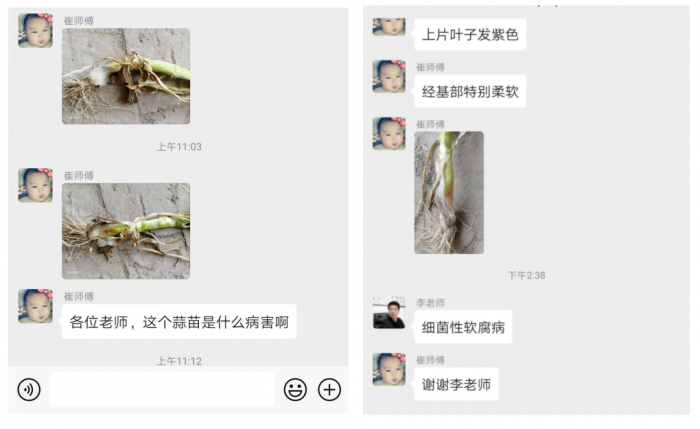 最后李教授给出了最佳的解决方案,用细菌类特效药“加e粒”复配杀菌剂解决(“加e粒”对细菌类病害敏感度高,不会产生抗药性,并且不受温度的限制)。再加上这两天温差大,让客户再配合叶面补充有机磷,来解决本阶段由于低温和细菌性软腐病造成的伤害,因为磷肥能提高细胞分裂的能量,更快的将光合作用产物和碳水化合物转向鳞茎,提高产量。然后给客户推荐苏保,苏保作用:拮抗有害生物,保护作物,减少有害生物对作物的危害,耐雨水冲刷、刺激生根,强壮植株,提高产量、抗旱抗冻、解除药害杀菌、杀虫、补充肥力。![]()