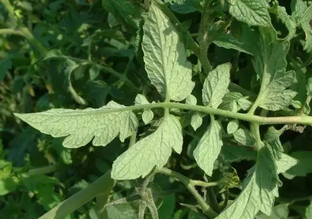 1、扭曲叶。温室番茄坐果以后长到核桃大小时,距果穗较近的叶片严重扭曲变形,呈蕨叶状,以后蕨形叶逐渐伸展开,生长基本正常。再过十几天时间,上部叶片又出现此现象。有效的方法是降低叶片的浓度,对温室进行适温管理。