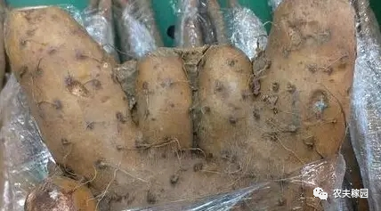 (2)盲目施用种肥。菜农在种植山药时,施用各种各样的种肥(开沟后摆放山药栽子前撒人沟内),但由于种肥施用过多或未能充分与土壤混合,摆放山药栽子时,栽子与种肥接触,把芽子或生长点烧坏,造成块茎分杈、多头等畸形产生。