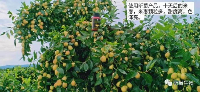 昕爵降温防晒剂可以用在任何作物上面展望未来,昕爵国际集团始终奉行“服务、创新”的方针,不断开拓进取,以服务保证为前提,以技术创新为核心,视产品质量为生命,竭诚致力于产品品牌的全面升级,携同各界有识之士共创美好未来。好产品用过才知道, 昕爵降温防晒剂在不同作物上均有很好的效果!使用昕爵产品,十天后,米枣长势强壮,颗粒多,甜度高,色泽亮!降温防晒剂-昕爵果蔬高产防高温防晒剂